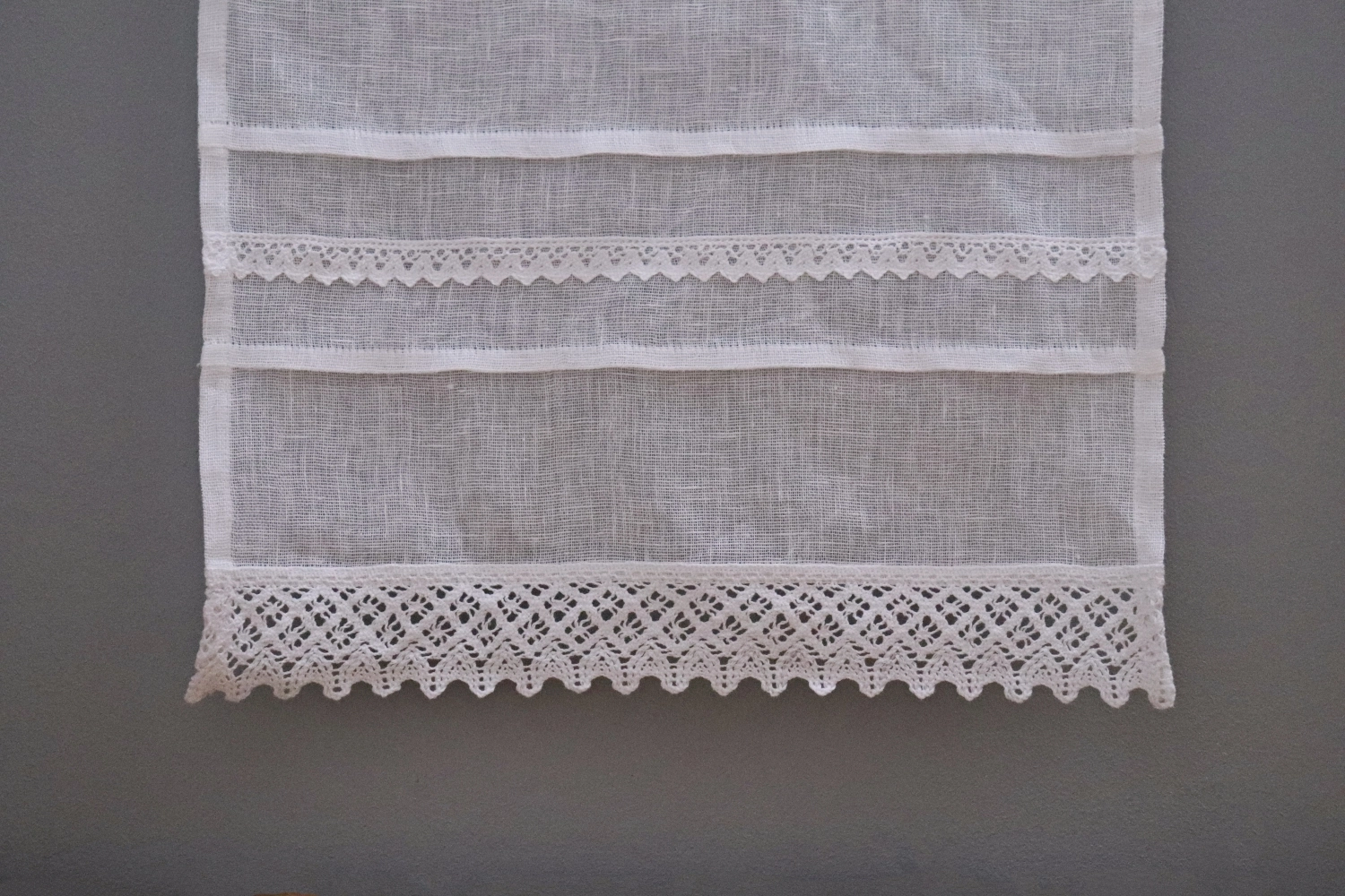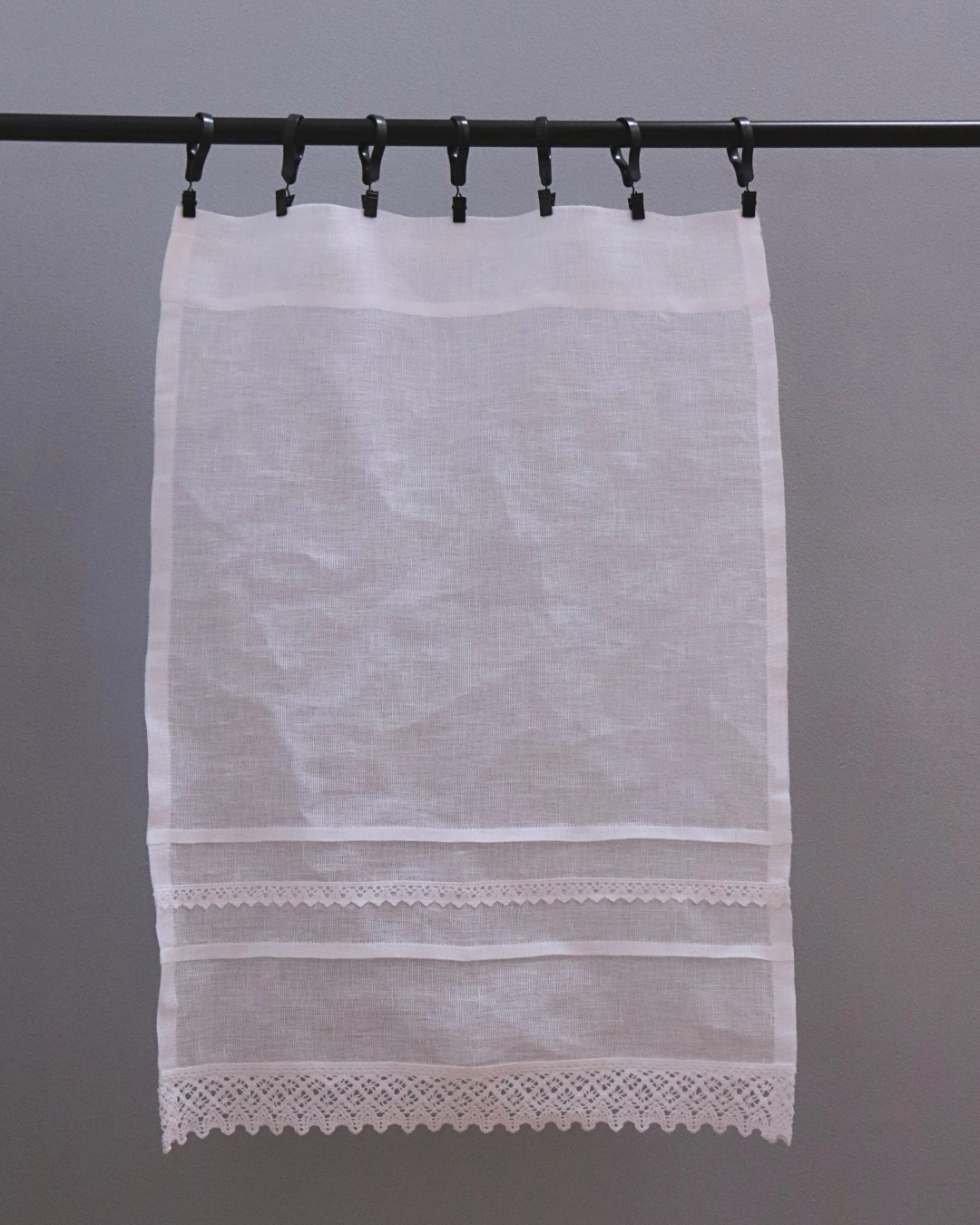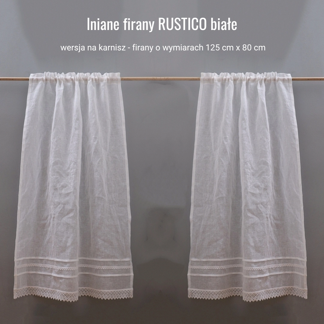 Lniana zazdrostka RUSTICO w białym kolorze do małych okien i drzwi.
