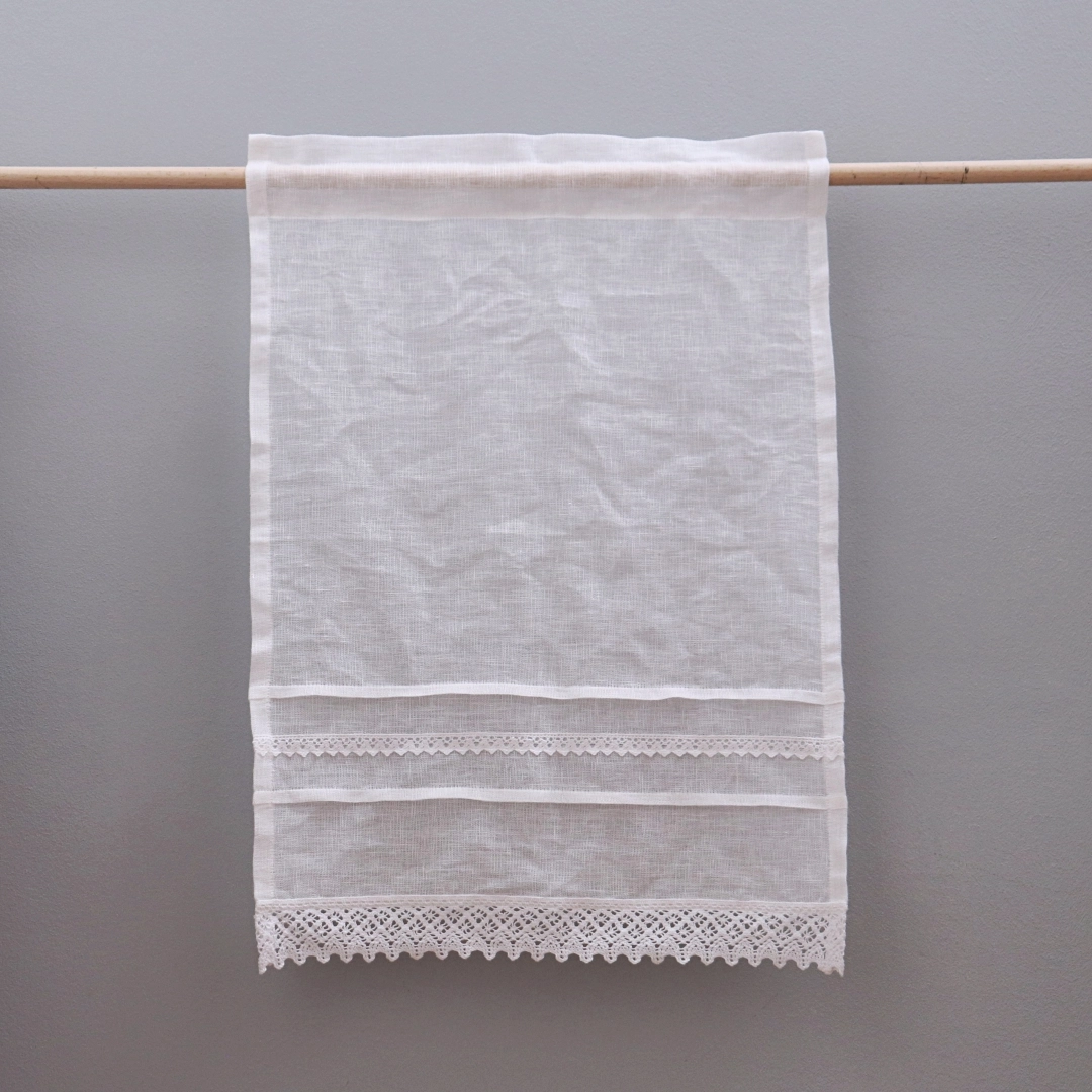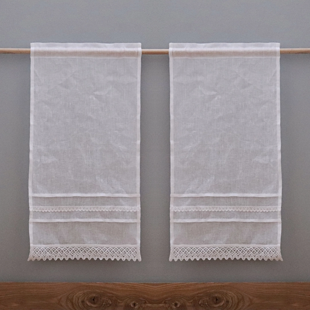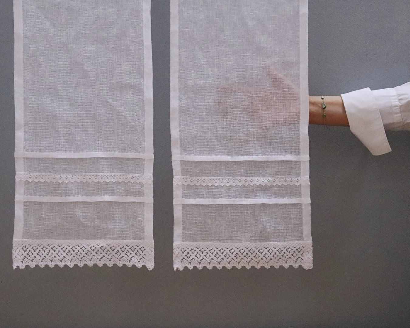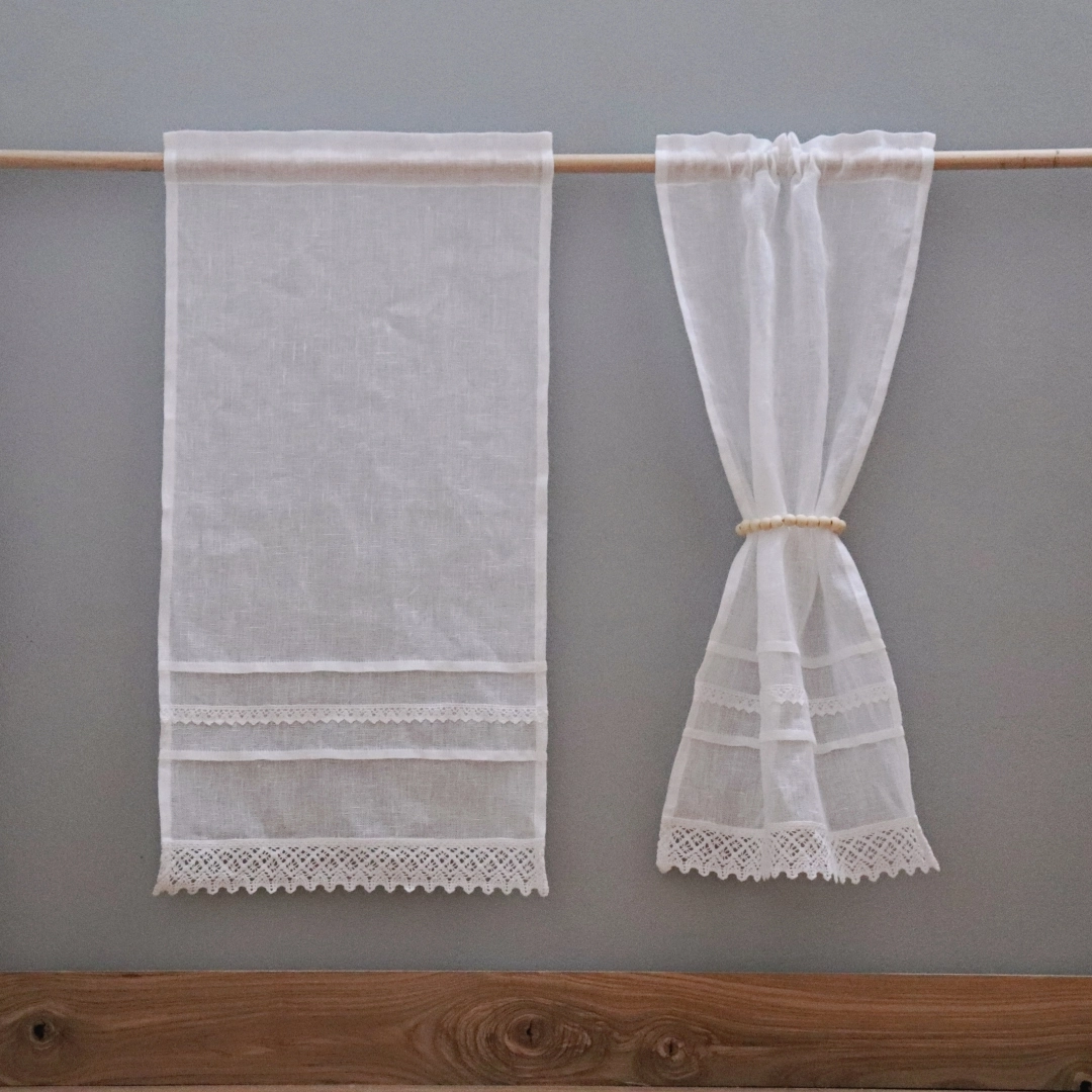 Lniana zazdrostka RUSTICO w białym kolorze do małych okien i drzwi.